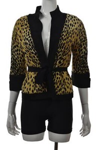 Alexander Wang Womens Jacket Size S Brown Animal Print Basic 3/4 Sleeve Cotton