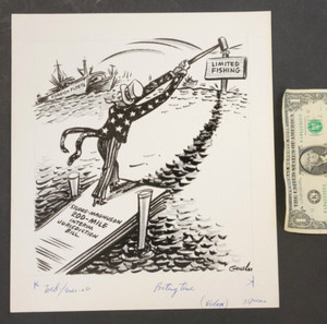 1975 Uncle Sam Limited Fishing Leroy Gensler vintage Orig. Comic Art Political