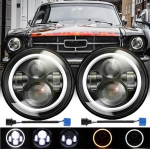 For Ford Mustang 1965-1978 7" INCH Round LED Headlights Halo DRL Angel Eyes Pair