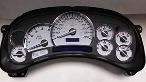 03-06 FACTORY REBUILT CUSTOM SS WHITE GAUGE BLUE LED SILVERADO WHOLE CLUSTER BB