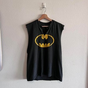 Vintage Batman Logo Distressed Thrashed Sleeveless T Shirt 80s Size Large Faded