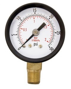 1-1/2" Utility Pressure Gauge, 1/8" NPT, Lower Mount, 0-30PSI