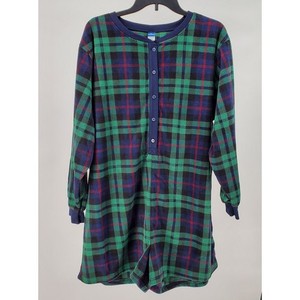 Old Navy XL Green/Blue/Red Plaid Fleece Henley Pajama Romper New