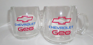Vintage Chevrolet Geo Metro Promo Cups Mugs Set of 2 Clear