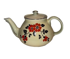 Red Poppy~Hall Teapot~4 Cup with Silver Trim~Vintage and Retro