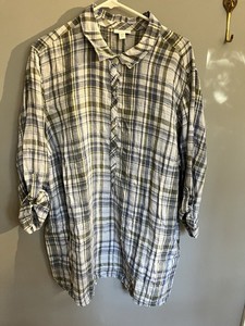 J. Jill Love Linen Popover Tunic Top Roll Tab Sleeve Shirt Pockets Plaid Plus 3x