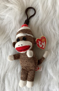 TY BEANIE BROWN SOCK 🧦 MONKEY 🙊 KEY CLIP- MINT W/MINT TAG