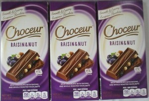 3 CHOCEUR PREMIUM CHOCOLATE RAISIN & NUT 7.05-OZ BARS