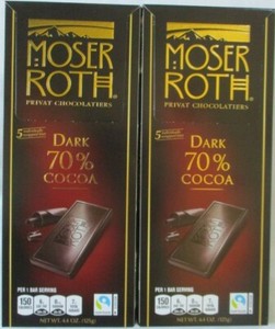 2 MOSER ROTH PREMIUM CHOCOLATE DARK 70% COCOA 5-BAR 4.4-oz PACKS