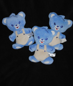 Lot 4 peluche doudou NESTLE ours semi plat bleu blanc beige grelot 16 cm TTBE