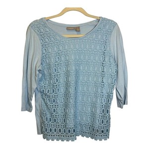 Chico's Blouse Women's Size Medium Lace 3/4 Sleeves Blue Chicos 1