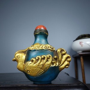 Exquisite art china Coloured glaze carved phoenix statue Trace gold snuff bottle