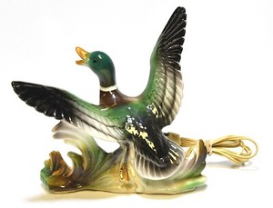 1958 MCM ERA FLYING MALLARD DUCK BY LANE & CO CERAMIC TV LAMP CABIN DECOR