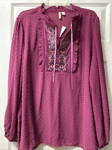 Cato 22/24 (3X) Purple Blouse NEW Polyester Velvet Long Sleeve Bohemian