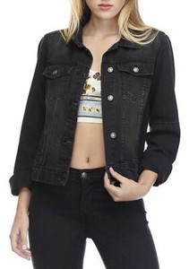 Free People Womens Rumors Jean Jacket Black Buttons Collared Flap Pockets XS New