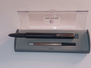 Sheaffer Black Chrome Trim Ballpoint Pen ,& Case, Medium Pt New