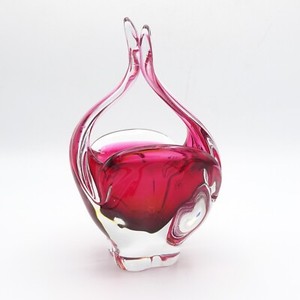 Vintage Czech Chribska Pink Blown Glass Dish