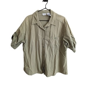 Vintage White Stag Womens Sz XL Short Sleeve Tab Sleeve Button Up Top Beige