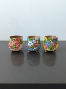 3 Vintage Hand Painted Ceramic Mini Planter Earth Tones Flower Strawberry M51