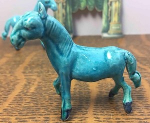 Vintage Chinese Mudman Blue/Green Horse Pony Miniature Figurine Mud Man