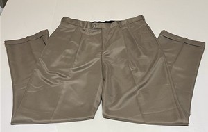 Croft & Barrow Pants Mens 36x32 Taupe Pleated Front Cuffed Microfiber NWT