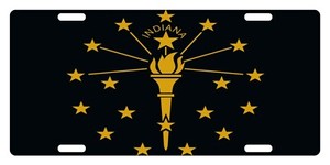 Indiana Flag Custom License Plate Black Background Version Emblem