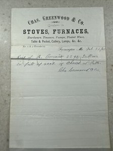 1880 Farmington, Maine Chas. Greenwood & Co. Bill Head Billhead Letterhead
