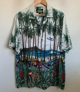 Hawaiian Reserve Collection Hawaiian Island Print Buttons Short Sleeve Size XL