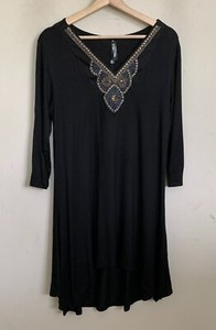 White Mark A-Line Dress Black V-Neck Bead Trim 3/4 Sleeve Stretch Size XL NEW