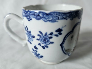 18TH CENTURY CHINESE BLUE & WHITE CUP, WITH CHARMING FAMILLE FIGURES