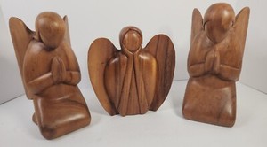 3 Novica Collection Hand Carved Wooden Angels/Watching/Praying/Indonesia