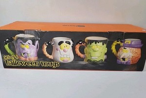 JC Penney Home Halloween Dracula Witch Frankenstein 4PC Ceramic Mug Set With Box
