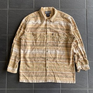 Vintage Hang Ten Striped Cotton Shirt XL Beige Multicolor Long Sleeve Made India