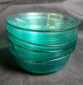 Vtg Arcoroc France Set 4 Ribbed Glass Bowls Teal Turquoise Blue Green Soup Cerea