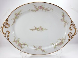 Wm Guerin Oval Platter 13.75in White Limoges Porcelain Pink Floral Gold Trim