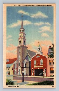 Vintage Linen Postcard Old Trinity Chapel & Independent Hose Co Frederick