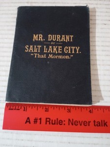 MR DURANT OF SALT LAKE CITY THAT MORMON BY BEN E RICH LDS Vtg 1903 Early Edition