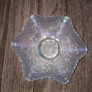 Vintage Fenton carnival Clear glass grapes and maple leaf 9 inch bowl
