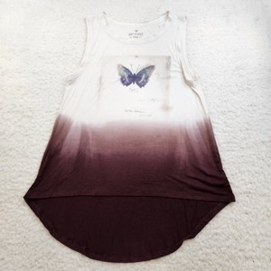 American Eagle Soft & Sexy Tank Top M Ombre White Burgundy Butterfly Hi Lo Hem