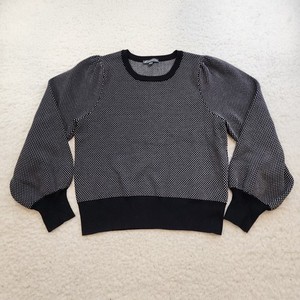 Adrianna Papelle Knit Sweater Jumper M Black White Polka Dot Balloon Sleeve