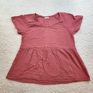 Maurices Y2K Babydoll Short Sleeve M Pink Button Bck Vneck 100% Cotton Texture
