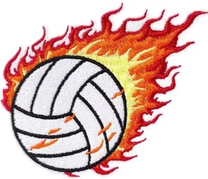 Flaming Volleyball embroidered Iron on patch flames fire burning hot