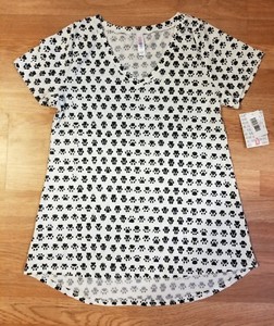 LuLaRoe Christy T SMALL Paw Prints White & Black Animal Puppy Prints NEW Sm Tee