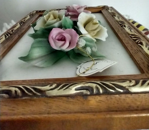 Arte Porcelain Designs by JS Porcelain Flowers Frame Mounted Signed w/ Tag