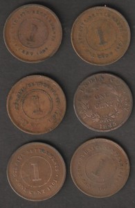 6 Straits Settlements 1 cent Queen Victoria 1897, 1845 ,1887, 1900, 1891 ,1901