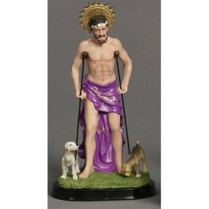St. Lazarus Statue 12 inch On Crutches Dogs Wood Base