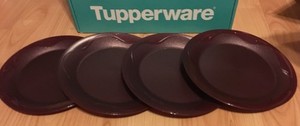 TUPPERWARE (4) NEW 9.5 INCH PURPLE IMPRESSIONS MICROWAVE LUNCHEON LUNCH PLATES