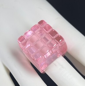 Chunky Lucite Square Ring Pink Cube Size 8 Retro Statement Runway