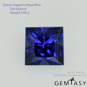 Cut stone - Sapphire Royal Blue Czochralski (Pulled) lab grown, Princess 1.48ct