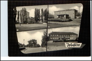 WOLFEN Mehrbild-AK DDR 1968 ua. Bahnhof, Filmtheater (Kino), Leipziger Strasse